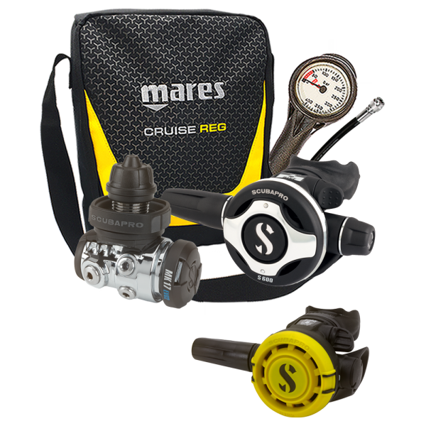 Complete Regulator Set Scubapro MK25EVO / S600 / R105 incl. Pressure Gauge, Inflator Hose and Regulator Bag