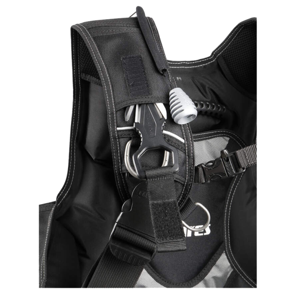 The Prestige buoyancy compensator guarantees you not only comfort but also safety. The waist belt buckle, which pulls forward and is easy to adjust, along with the soft back padding, ensures a comfortable yet precise fit. Additionally, the jacket is equipped with knife attachment points and an integrated cover for an optional Line Cutter, so you’re well-prepared for any situation.